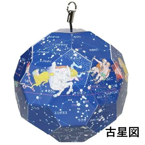 小さな32面体を天球に見立てて、星座を形作る星をちりばめたミニ天球儀です。