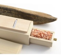 外箱はホオノキ材を使用し、鉋台は天然木を使用した鰹節削り器。(鉋台の木部はLOTにより木材が変更になる場合がございます。) ミニチュアの手のひらサイズでとても可愛らしい商品ですが、ちゃんと削れますよ!
