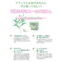 ナチュラル志向のあなたにぜひ使ってほしい! 天使の香り ユーカリプタス石鹸 ナチュラルソープ 100g ●天然素材100%の石けん ユーカリプタスナチュラルソープの石けん用素地は食用に出来る品質の牛脂とヤシ油からできています。オレイン酸を多く含んでいるため、肌に良くなじみ、汚れもきれいに落とします。 ●[本釜炊]という製法が潤い成分を逃がさない 純生な中性油から本釜炊で造っているので、油が持っている潤い成分、グリセリンが自然な形で溶け込み、化学合成品の保湿剤が一切入っていないのでしっとりとした洗い上がりになります。 ●生ものだからエージレス(酸化防止剤)を袋に入れました この石鹸は完熟の生ものです。しかも食品の防腐剤や変色防止剤に相当する化学合成物質や酸化防止剤は何も入っておりません。開封後そのまま放置すると酸素と反応して変色する場合があります。そのため酸化防止剤を袋に入れ、できるだけ酸素を通さない特殊包装紙の袋にいれ、出来立てをフレッシュパックにしました。 ●ユーカリの安らぎと癒しの香りで美しい肌を作ります 皮膚の交感神経は、香によって興奮したり鎮静化したりします。鎮静化する香りのひとつにユーカリプタスがあります。ユーカリプタスの香が脳にも皮膚にも安らぎをもたらし、ゆっくり眠った翌朝のしっとりとしたおだやかな肌を創る理由なのです。 ■商品名 天使の香りユーカリ石けん ■標準重量 100g −注意− ・お肌に異常が生じていないかよく注意してご使用ください。 ・お肌に異常があるときや、お肌に合わないときにはご使用をおやめください。 ・万が一目に入った時は、流水でよく洗い流してください。
