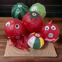 日本の昔の遊びの紙風船。 金魚・タコ・メロン・西瓜・トマト・ミニ紙風船の6枚セットです。 膨らませてから手でボンボンとついて遊んだり、糸で吊るしてデコレーションとしてお楽しみください。 ■サイズ・容量: 金魚 約17cm タコ 約17cm メロン 約21cm 西瓜 約21cm トマト 約21cm ミニ紙風船 約10cm ■生産地:中国 ■素材・成分:本体/グラシン紙