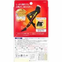 極上あったか&なめらか。一日快適スッキリ美脚! しっかり着圧でも心地よく、あたたかい。 ●医学から生まれた段階圧力設計。 足首から上へいくほど圧力が低くなる設計で脚を軽やかに、スッキリと美しく整えます。 ●プレーティング編み採用。 ふんわりあったか・肌ざわりなめらか。 ●お腹まわりゆったり設計。 やさしくフィットし一日中快適。 ●光吸収発熱機能で脚全体あったか。 ●80デニール。 ●S-Mサイズ・ブラック。 【使用方法】 (1)たぐりよせて、つま先を先端まで入れる。 ※タグがついている方を後(お尻側)にしてはく。 (2)足首まで引き上げる。 (3)両手の親指を内側に入れて、少しずつ均等に引き上げる。 ※片足ずつ引き上げる。 ※サポート力が強いため、注意しながらゆっくり引き上げる。 (4)立った姿勢のままで、股下まで少しずつ引き上げる。 (5)股下にすき間がないように引き上げてから均等にウエストまで引き上げる。 ※股下にすき間ができてしまった場合は、足首まで下げてから、再度引き上げる。 ★やぶれ、伝線を防ぐために ・ご使用前に、手足のつめやかかとをなめらかにし、指輪などをはずす。 ・つめを立てたり、一気に引き上げたりしない。 【お手入れ】 ・洗濯ネット使用。 ・同系色と一緒に洗う。 【使用上のご注意】 ・次の方はご使用前に医師に相談する。 (1)現在、病気やけがなどによる脚のむくみやだるさを感じる方。 (2)血圧の高い方、心臓・腎臓などに障害のある方。 (3)現在、かゆみや発疹をおこしている方。 (4)血行障害をおこしたことのある方。 ・サイズの合わないものを使用しない。(血行が悪くなるおそれがあります。) ・2枚重ねて使用しない。(血行が悪くなるおそれがあります。) ・使用中、使用後に気分が悪くなったり、かゆみ、発疹、痛みなどの異常を感じた場合は、すぐに使用を中止する。 ・就寝時に使用しない。 ・医療目的に使用しない。 ■サイズ・容量:S-M、M-L ■内容量:1枚入 ■製造国:日本 ■生産地:日本 ■素材・成分: 【材質】 ナイロン、ポリウレタン 【圧力値】 足首:21hPa/ふくらはぎ:16hPa/太もも:11hPa 【サイズの選び方】 ★S-Mサイズ 身長:145〜160cm ヒップ:80〜93cm 太もも:45〜53cm ふくらはぎ:32〜38cm 足首:19〜23cm ★M-Lサイズ 身長:150〜165cm ヒップ:85〜98cm 太もも:50〜60cm ふくらはぎ:36〜42cm 足首:21〜25cm ※S-MとM-Lの両方に該当する場合は、身長が中央値に近い方のサイズをお選びください。 注意事項 予告なく成分・パッケージが変更になることがございます。予めご了承ください。