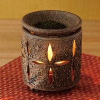 上部のお皿にティースプーン一杯の茶葉をのせ、点火したキャンドルを横の穴から入れ本体の中心に置きます。
