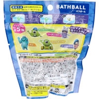 お風呂嫌いも好きになる! どれが出るかはお楽しみ! どのマスコットがでてくるかな? ●マスコットは全5種。どのマスコットがでてくるかな? (どれか1つがでてくるよ!) ・サリー ・マイク(ヘルメット) ・マイク(ボンベ) ・ブー(モンスター) ・ブー(ヘルメット) ●グリーンアップルの香り。 ■販売名:モンスターズ・インク/フィズ ■対象年齢:12歳以上 ■成分:炭酸水素Na、クエン酸、硫酸Na、水、PVP、香料、グリセリン、ラウリル硫酸Na、メチルパラベン、プロピルパラベン、黄4、青1 ■マスコット主材質:TPR ■内容量:70g(マスコット含む)×1個入 ■製造国:中国 【使用方法】 浴槽のお湯(約200L)に対して本品1個を入れて入浴してください。 (1)袋からバスボールを取り出します。透明フィルムをはがし、お湯のはられた浴槽にゆっくりといれます。 (2)ボールが発泡しながらしだいに溶けていきます。 (3)バスボールが溶けていくと・・・カプセルに入ったマスコットが登場します。 【注意】 ※本品を安全にお使い頂く為にご使用前に必ずお読みください。この注意書きは捨てずにすぐ読める場所に保管してください。 ・小さい部品があります。誤飲・誤食の危険がありますので、小さなお子様に絶対に与えないでください。 ・本品は食べ物ではありません。 ・バスボール内のカプセルは絶対に口に入れないでください。窒息の恐れがあります。 ・包装材や本品及びマスコットを絶対に口に入れないでください。窒息の恐れがあります。 ・万一、飲みこんだ場合や使用中・使用後に身体・肌に異常があらわれた時は、すぐ医師の診察を受けてください。 ・体調不良時や肌に異常がある時は使用しないでください。 ・目に入った場合は真水で直ちに洗い流し、異常が現れた場合は医師の診察を受けてください。 ・せき込む事がありますので発泡中に顔を近づけないでください。 ・本品を濡れた手で触ると色がつく事がありますで、ご注意ください。 ・稀に浴槽に色素がつく事がありますので、使用後はすぐに浴槽・風呂釜等をよく洗い流してください。 ・変色・変質の恐れがありますので大理石、木製のお風呂等では使用しないでください。 ・24時間保温等、循環後、二度焚きすると風呂釜内部に汚れが付着する恐れがありますのでおやめください。 ・マスコットが排水口に詰まる恐れがありますので、取り出してからお湯を抜いてください。 ・残り湯は洗濯に使用しないでください。 ・他の入浴剤と併用するなど用法・容量をを超えた使用しないでください。 ・入浴以外の用途には使用しないでください。 ・本品がタオル、衣類についた場合はすぐに洗ってください。 ・小さなお子様やペットの手の届かない所で使用・保管してください。 ・高温多湿や直射日光を避けて保管してください。 ・開封後はすぐに全量をお使いください。