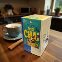 有機スパイスとハーブが香る、カフェインレスチャイ。ほっと一息のティータイムはもちろん、カレーなどスパイス料理のおともにもおすすめです。
